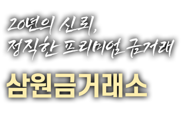 삼원 금거래소는 수원 갤러리아 백화점 귀금속 코너 <동가옥>에서 20년간 고객님과 함께해온 신뢰를 바탕으로 시작된 프리미엄 금거래소입니다. 변하지 않는 정직함과 오랜 감정 노하우로, 정확하고 믿을 수 있는 거래 경험을 약속드립니다.